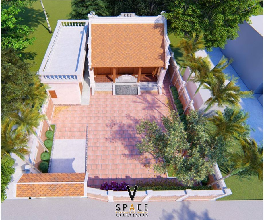 Mẫu nhà thờ họ 3 gian 2 mái có bình phong kết hợp nhà ở tại Phú Thọ