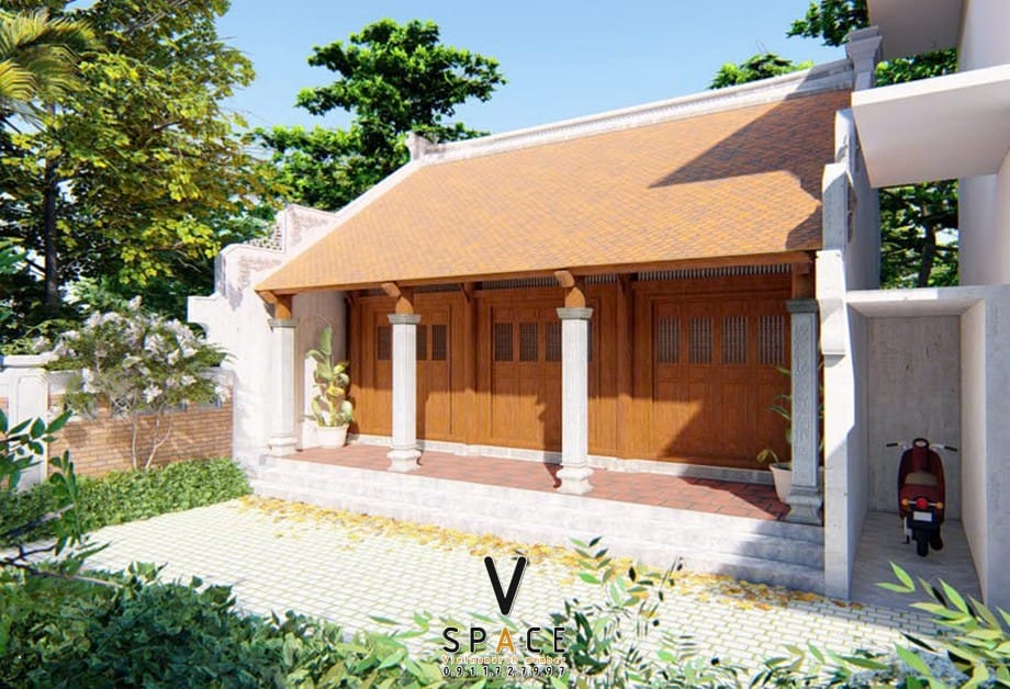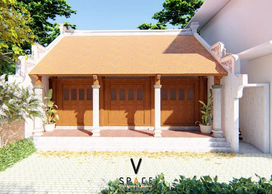 Phối cảnh nhà thờ gia tiên 3 gian 2 mái 78m2 tại Lạng Sơn