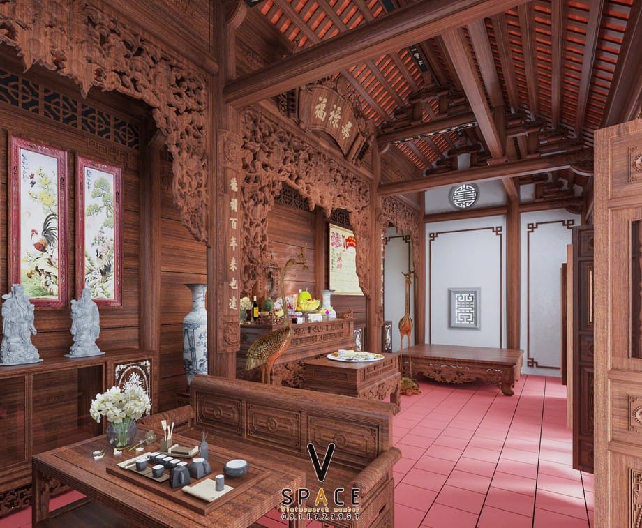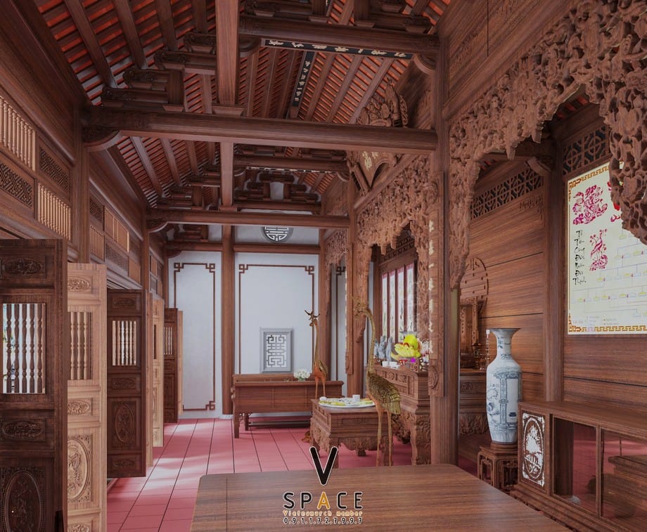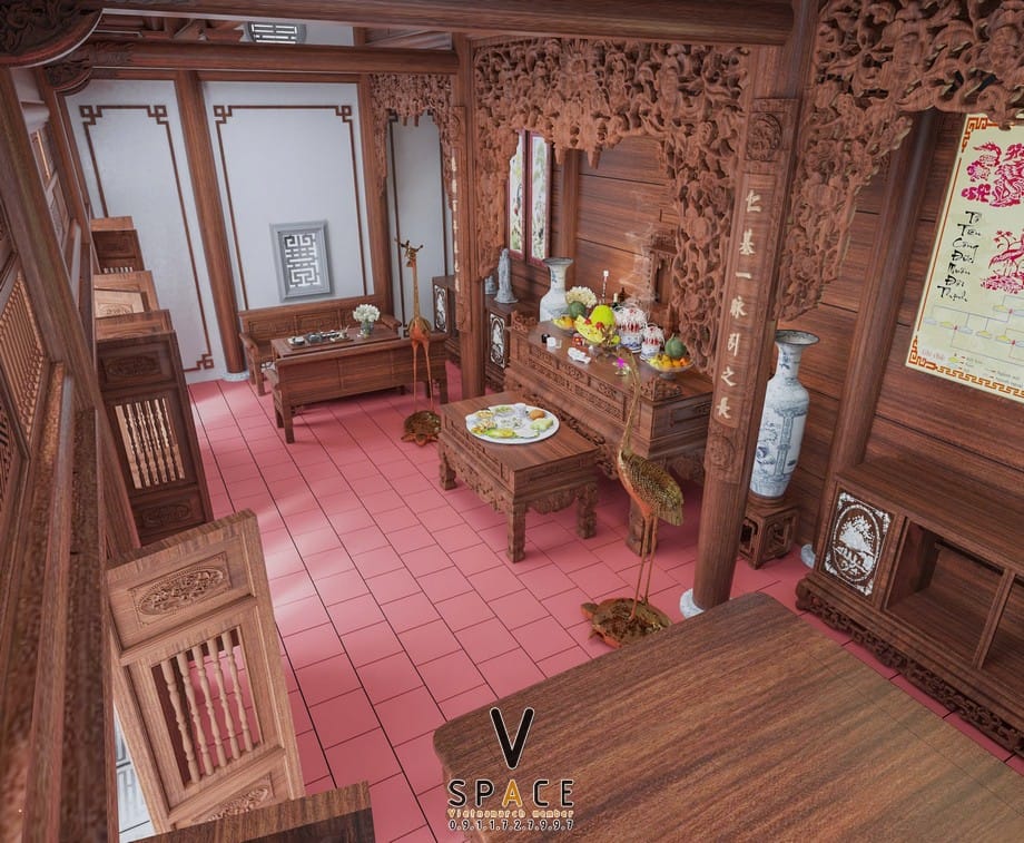 Thiết kế kiến trúc và nội thất nhà thờ họ 3 gian 2 mái tại Hà Tĩnh