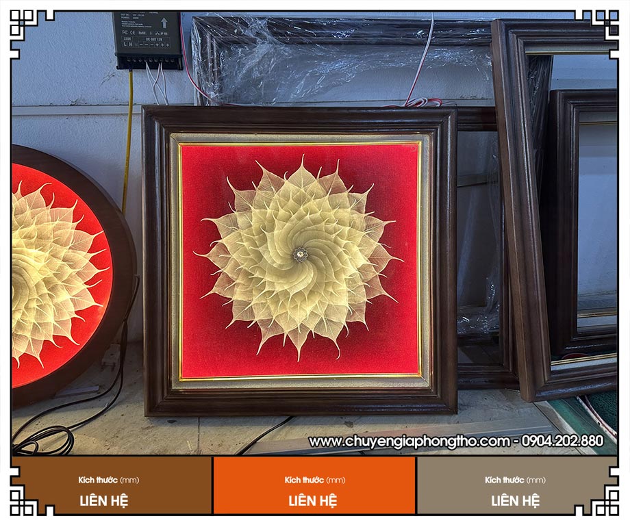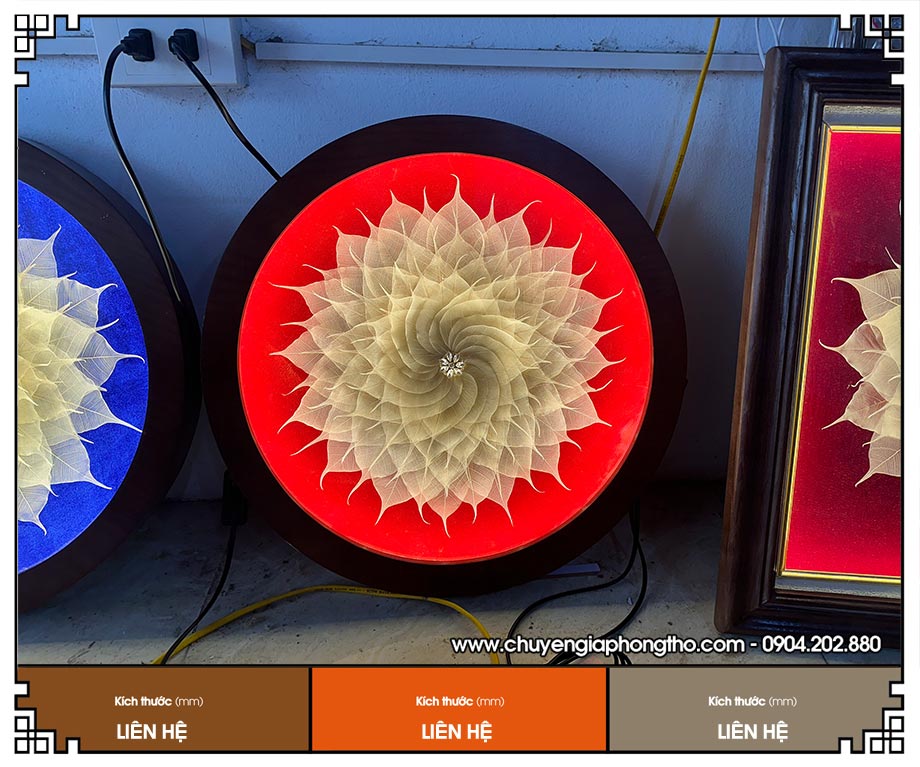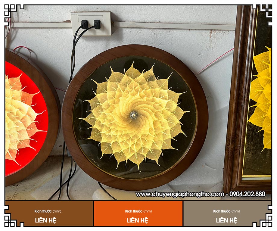 - Thiết kế đa dạng: Nhiều mẫu tranh lá bồ đề hiện đại, truyền thống, kết hợp ánh sáng LED, phù hợp cho phòng khách, phòng thờ, văn phòng hay không gian thiền.